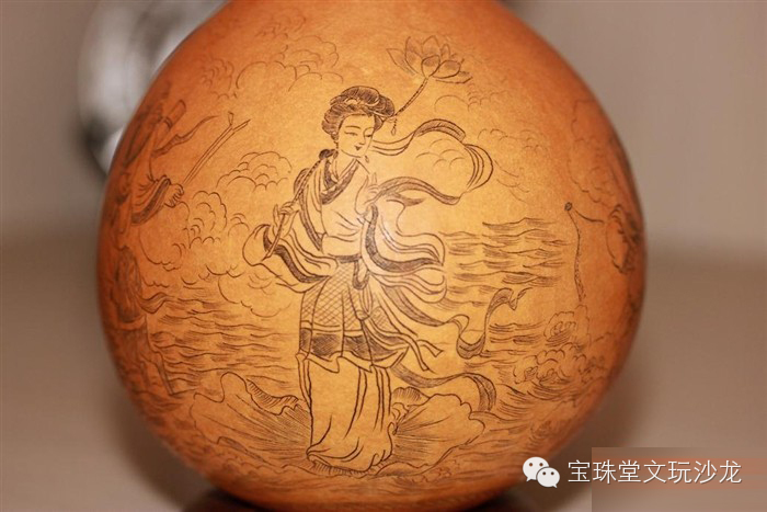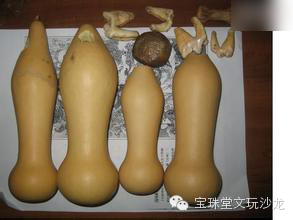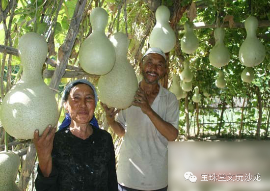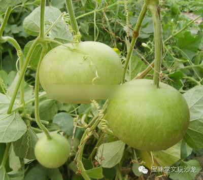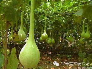 葫芦是世界上最古老的作物之一,中国考古在浙江余姚河姆渡遗址发现了7000年前的葫芦及种子,是目前世界上关于葫芦的最早发现。葫芦在中国古代有许多记载,同时关于其名称也有多种叫法,“瓠”、“匏”、“壶”、“甘瓠”、“壶卢”、“蒲卢”均指葫芦。“壶”、“卢”本为两种盛酒盛饭的器皿,因葫芦的形状和用途都与之相似,所以人们便将“壶”、“卢”合成为一词,作为这种植物的名称。而“葫芦”则是俗写,并不符合原意。不过后来人们约定俗成地写作“葫芦”,一直延续。谐音,福禄。我国民间常用寿星佬挂葫芦年画来做祝福。