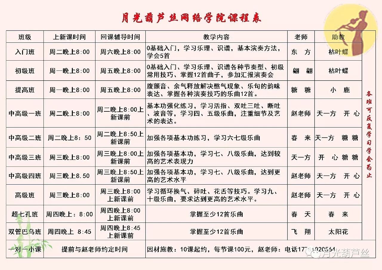 月光葫芦丝网上学院,入门班、初级班、提高班、中高级班、九孔葫芦丝班、双管巴乌班,报名QQ 290340234 ,电话13171787585