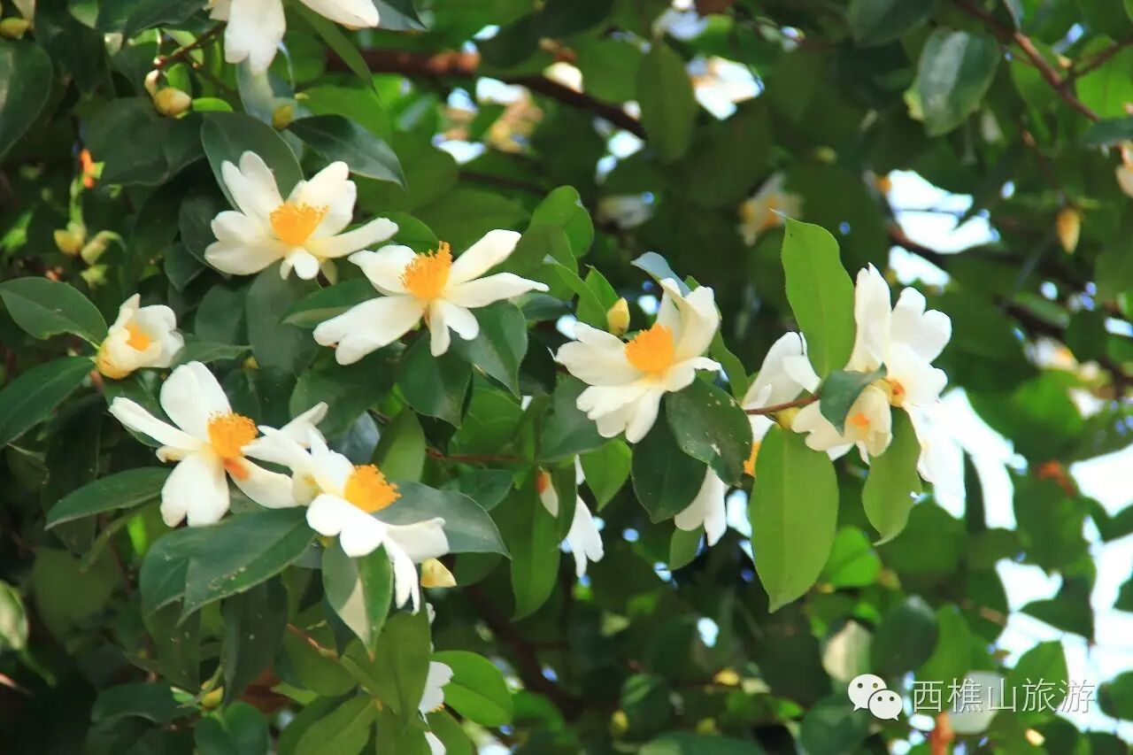 白花油茶通常在11月份开始开花,可有2个月的花期。承日月之精华,吸樵山之天然养分,油茶树的茶果,还能榨油供食用。茶油色味清香,还营养丰富。