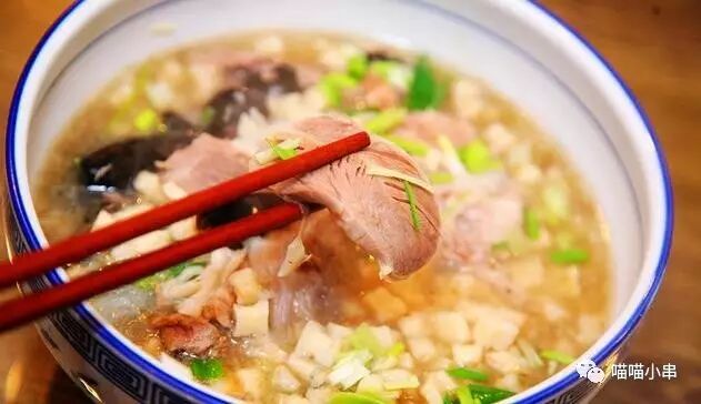 撇去脂花和油,上层完毕,这才正式进入中层的捞肉环节。由于泡馍厨具的发展,很多用具已与过去不同,但功能大致一样,这里仅介绍上世纪80年代始的捞肉工具和程序。