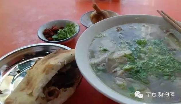 羊肉泡馍最出名的是西安羊肉泡馍,但是宁夏的羊肉泡馍味道更好。西安的羊肉泡馍馍碎汤少呈糊状,宁夏的羊肉泡馍则是汤浓且多,肉质鲜美,泡馍多切成片状,连汤带水的吃起来是非常的过瘾!宁夏羊肉泡馍也是宁夏本地人早餐的首选。(宁夏人可真能吃肉啊!大早上的就这么多肉肉了!)