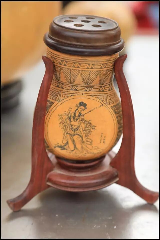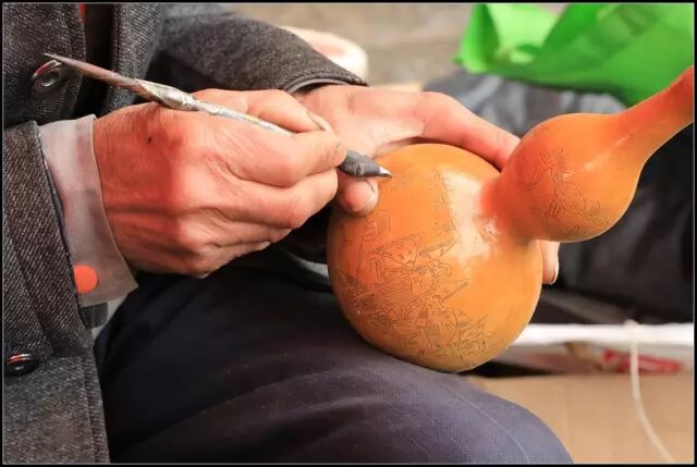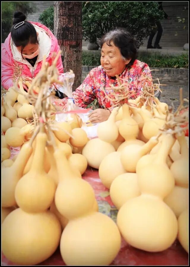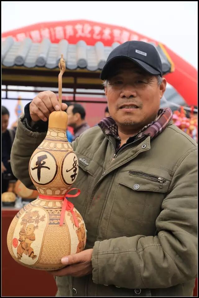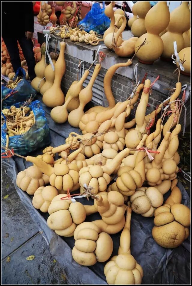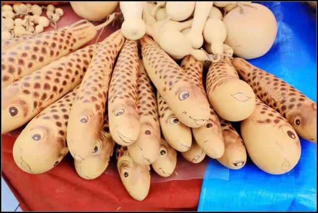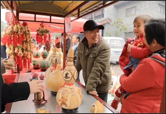 葫芦节上众多的展品分列在古城的道路两旁。葫芦作品琳琅满目,千奇百怪。有小巧玲珑的袖珍葫芦、养身保健的葫芦灸、工艺精妙的雕刻、烙画葫芦、造型奇特的油锤葫芦,还有形式多样的葫芦台灯,可谓是应有尽有。
