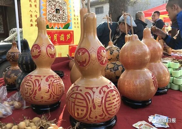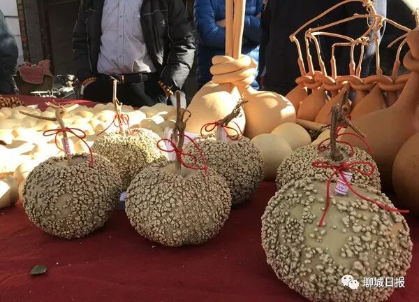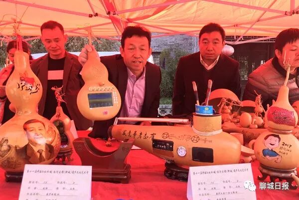 11月10日上午,中国聊城第十一届葫芦文化艺术节在古城区开幕。本届葫芦文化艺术节以“畅游葫芦之乡,品味葫芦文化”为主题,来自国内50余家葫芦文化专家、学者及产业发展引领者、1000余家国内葫芦产业商户、5000余名葫芦交易商齐聚水城、共话发展。图为参展者向记者展示利用“粘接”工艺制作的创意葫芦。