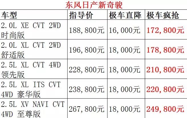 看完了奇骏时尚的外观和先进的技术,相信你一定会觉得这款车应该价格不菲吧!但是,小编和大家说过!要用“冰点价”让大家清凉一夏!到底多少钱呢?请往下看!↓↓↓↓↓↓↓