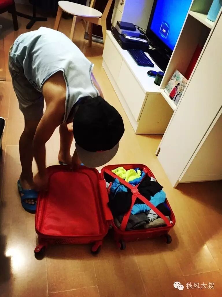 每次出行,儿子都是自己负责整理自己的行李,小伙子已经长大了