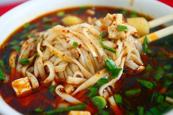 臊子面是著名的西府小吃,以其酸、辣、香、薄、筋、光、煎、稀、汪的特点闻名于世,红辣辣的油层上漂浮着青绿的葱花,哧溜一口,这酸爽,才够味!此时,写稿的小编已经饥肠辘辘,若能来一碗正宗臊子面,我就是写趴在键盘前也在所不辞!
