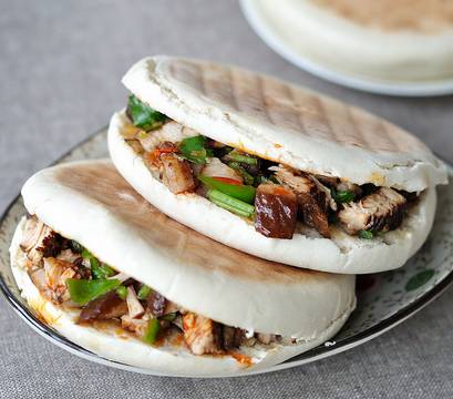 “中国人的汉堡包,陕西人的风味”,用白吉馍包夹着腊汁肉,白吉馍的香脆与腊肉的肥而不腻完美的结合,真真是郎才女貌,吃过便知道什么叫做“回味无穷”。