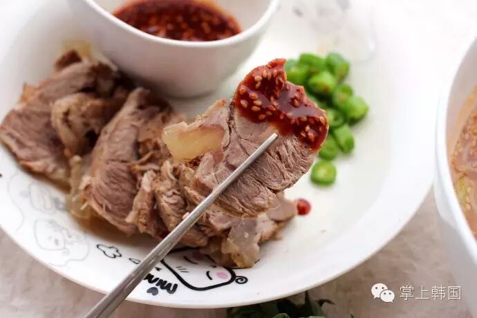 爽口好吃的冷面,最重要的就是汤头,接着就是劲道的荞麦面,汤头是经过长时间熬制的高汤混合泡菜汁,梨汁等材料调制而成,不是简单速食调料包调制成的哦。再搭配上牛肉、黄瓜、以及自己亲手腌制的泡菜,一大碗呼噜噜下肚,凉爽又饱腹,在搭配上爽口的小菜和慢炖了3个小时的牛肉,怎一个美味能解释的了。