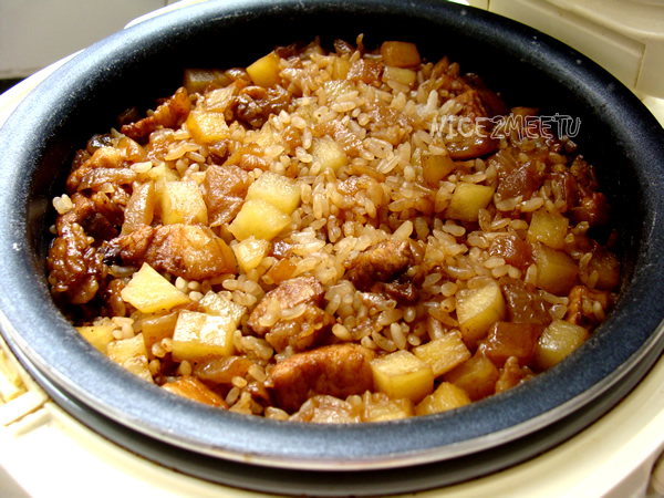 类似于盖浇饭,却又比盖浇饭更入味,更诱人,食材和米饭融为了一体。