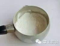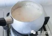 3、 制作糯米糊,在锅里放适量清水,倒入糯米份,小火,不停的搅拌,直至锅内清水和糯米粉变成均匀的糊状,放凉