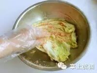 2、 白菜腌到菜梗部分软榻即可用凉开水冲去多余盐分,沥干