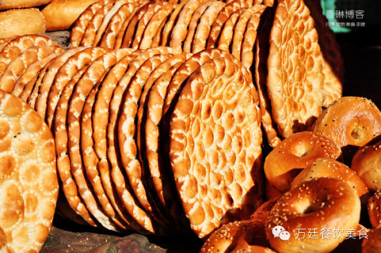 还有种食物深受当地人喜爱,那就是馕。到处都是馕的身影。这是最常见的上面有花纹的薄片馕,吃起来有咬劲,越嚼越香,买上一个一路走一路掰着吃,很是惬意。