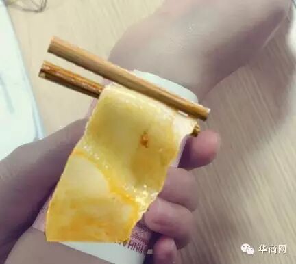意味着胳膊的宽度相当于圈起纸币的直径