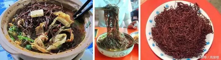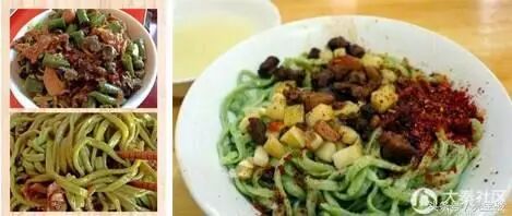 用猪血将面粉和成团,在擀好的面条上抹一层猪油,折叠、切成细条,蒸熟,剁好臊子(肉丁、菠菜、豆腐、生姜)拌入即可。
