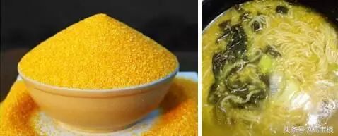 细包谷糁稀饭中下入韭菜叶宽、长10厘米的面,炒葱花、调辣子即可,为了正宗起见千万别放醋。