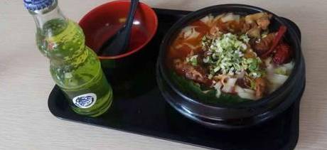汤和面各占一半(菜一般是:豆腐、红白萝卜、黄花、木耳、肉、韭菜、西红柿、菠菜)。