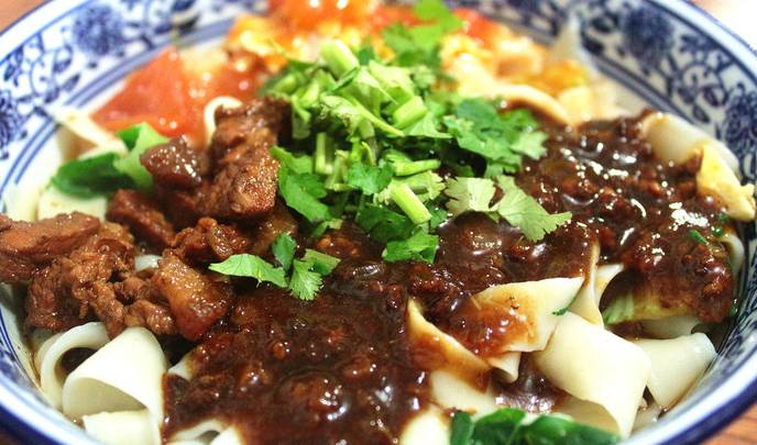 是一道用料考究、独具特色,已有千年历史的风味面食。初以荞麦面为面料,配以熟羊肉、葱花及茴香、八角、辣椒、花椒、胡椒等熬制的羊肉汤,吃起来香而不腻,味道鲜美。