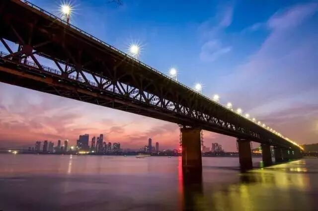 横卧于武昌蛇山和汉阳龟山之间的江面上,是中国第一座横跨长江的桥梁。 上层为公路,下层为复线铁路。 气势宏大的跨越在江面上,夜晚的武汉长江大桥特别漂亮。