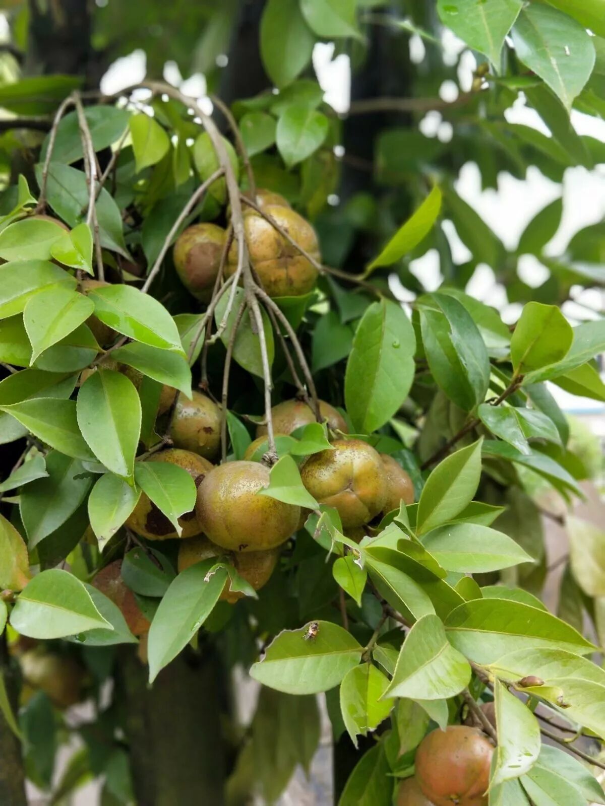 置身于油茶树海之中,满眼跳跃着生动的绿波荡漾,自由呼吸着油茶树释放的清新芳香,倍觉神清气爽。走近油茶树,你会发现油茶树结果的同时,另外新出的枝头缀满嫩绿的花蕾。其实,这是油茶树花果同坐的奇特现象,花蕾在头年10月开花,到第二年的10月份果实才能成熟采收。也就是茶油果经过“秋冬春夏秋”五个季节的孕育,才能长大成熟。因此,在民间油茶也有“抱子怀胎”的说法。数不尽的油茶树开花结果,抱仔成团的时刻,真有“金果银花枝上挤,玉润珠圆只待君来取。”一番丰收景象。