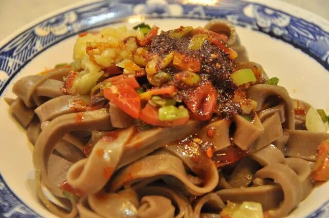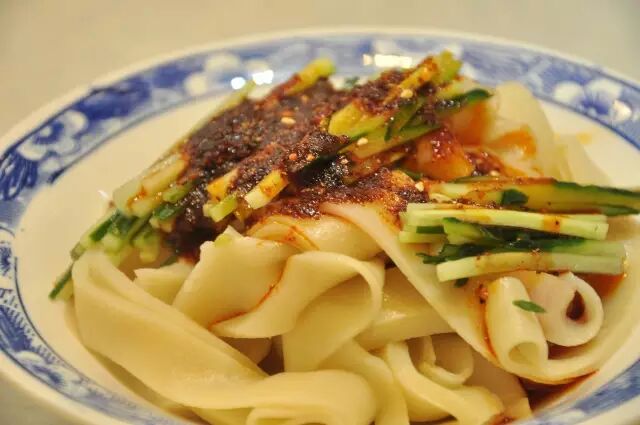 这个可是店家自制的哦,玉米面和小麦面混合而成,热的水围城、凉的浆水鱼鱼,各有各的特色,真的超级美味~小编超级喜欢他家的醋水,香油、辣椒、蒜泥、姜沫、韭菜·····味道超级诱人,美得很!
