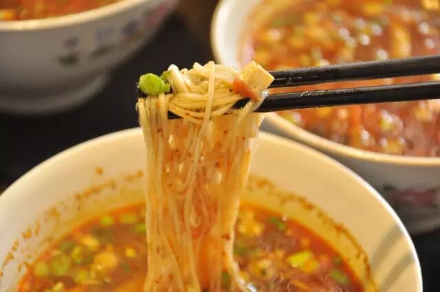 肉丁,洋芋丁、豆腐丁西红柿、红辣椒丝、黄花葱节、木耳等调制的臊子汤,特别正宗,酸辣带香,味道鲜美,劲道的细面条一口吃下,爽心无比。