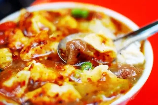 肉丸糊辣汤另有一个雅致的名字叫八珍汤,叫八珍自然夸张,不过这也说明糊辣汤“内容”很多。吃前浇一勺店家精心熬制的红艳艳的辣椒油,吃罢舌尖发麻,微微冒汗,浑身舒坦。