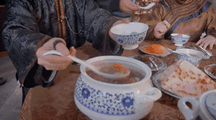难怪开拍前,刚做好的胡辣汤一端上来,吴老爷就迫不及待地舀了一碗开吃。