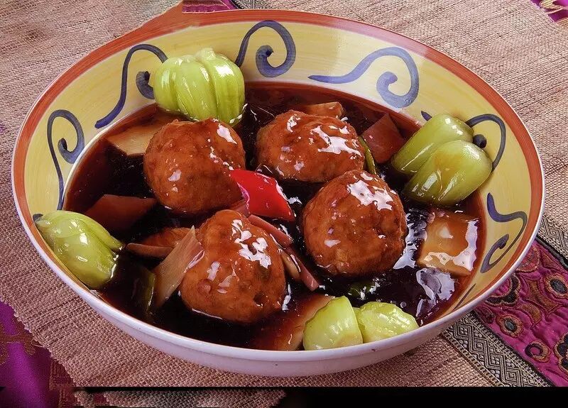 狮子头是江苏省扬州等地汉族传统名菜,属于淮扬菜。传说狮子头做法始于隋朝,具有色泽雪白、肉质鲜嫩、清香味醇、四季皆宜的特点。