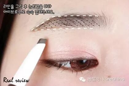 先用刷子整理下眉形,在此推荐下悦诗风吟的眉笔,自带刷头,我自己每天画觉得很好用!韩国原价好像买成3000韩币这和RMB18元左右。