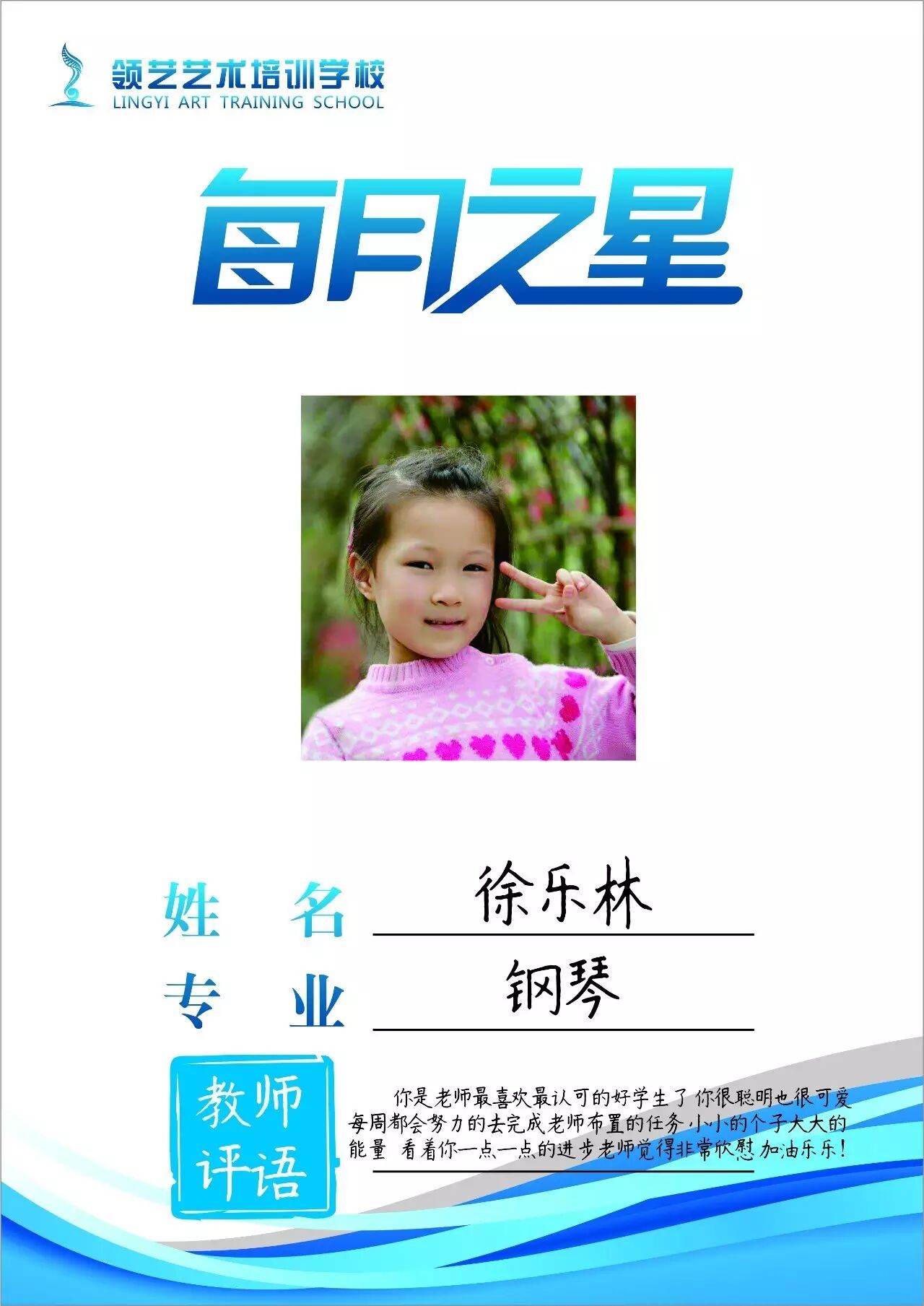 教师评语:认真,专注的小可爱!每月之星任师颖