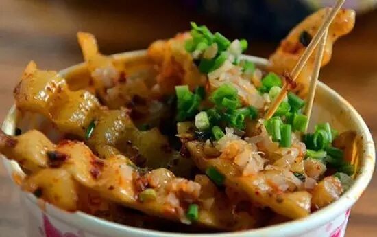 内江的凉粉,用宋丹丹演小品的台词来说,那是相当的巴适,看到面上的新鲜海椒没的?绝对辣得可以让你飞起来,先整来开开胃。
