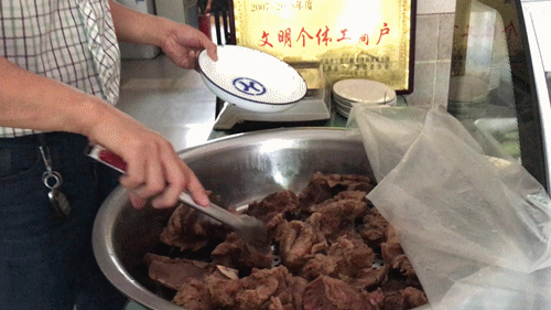 没有牛羊肉特殊的膻味,只有驴肉醇厚的肉香,筷子一挑,如银丝一般的粉丝盘桓在碗中,厚实的驴肉泛出健康新鲜的红色,这是地道的红肉!对于“三高”人士而言,驴肉是比较健康的肉食,可以适可而食。
