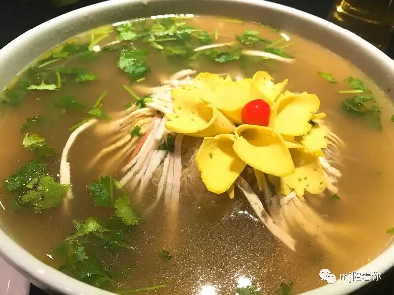 这道菜要重点介绍,它的名字叫做:洛阳燕菜,也叫牡丹燕菜。主料有白萝卜、海参、鱿鱼、鸡肉。洛阳燕菜是洛阳水席中的头道菜。