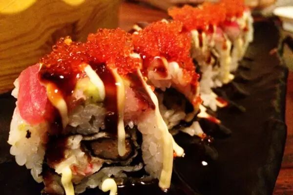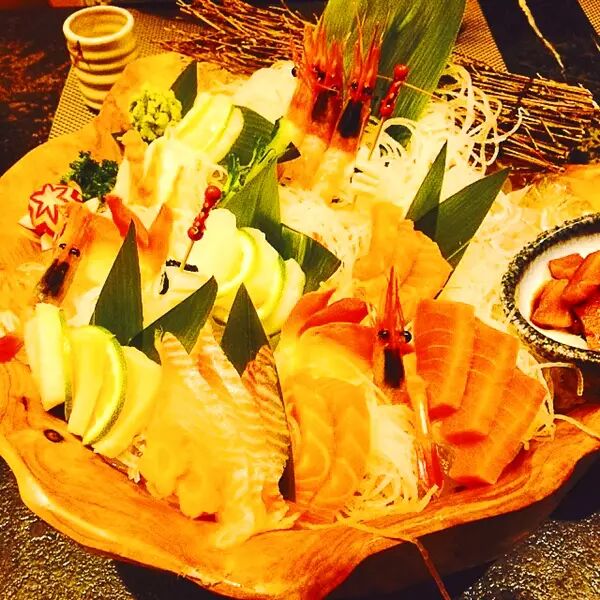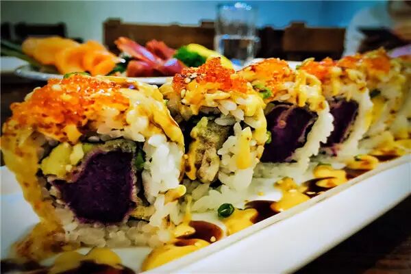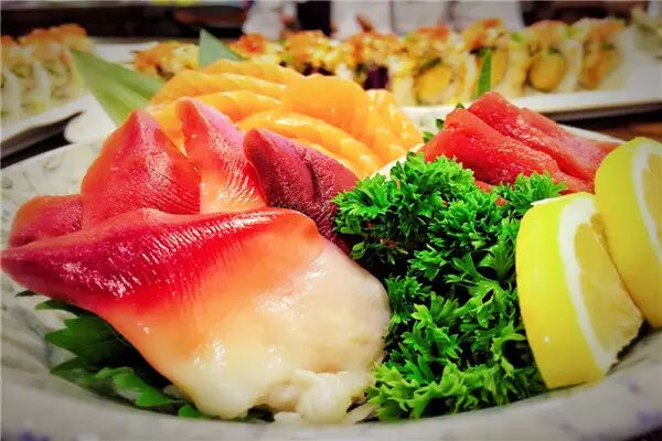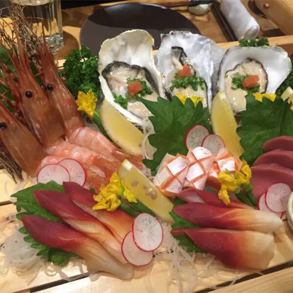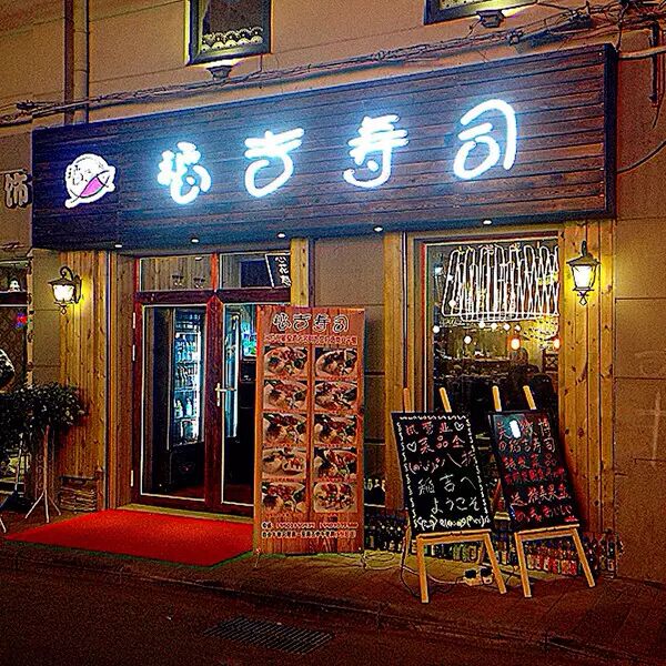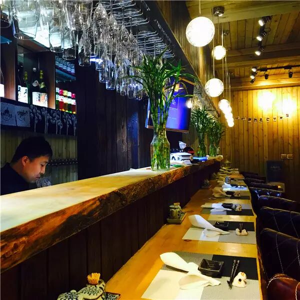 传统印象里吃一顿日料总是要花个几百大洋才能吃饱吃好,但是在天津最繁华地带的和平路与哈密道交口,隐藏着一家骨灰级日料控也要趋之若鹜的美食天堂——稻吉寿司。这里并没有像其他灯光昏暗的居酒屋那样放些日剧,一进屋便灯火通明座无虚席,淡黄色的原木墙壁和桌椅让人胃口大开,坐在皮质沙发里看着对面洋气十足的吧台倒挂着样式各异的红酒杯,耳边传来抒情的英文歌曲,真是恍惚了时空,这家日料店未免太高调!