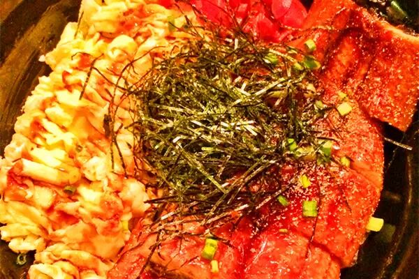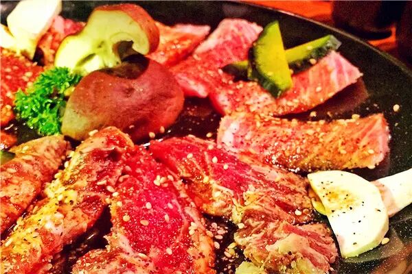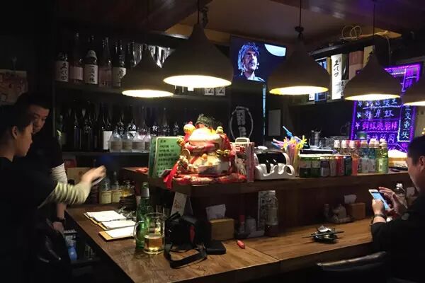 在小成都道上,有一家日式烧肉店,每天都撩拨着一大波儿食客们的心弦,到了晚上,大家都匆匆忙忙的来到这里,只为能享受一顿美味的日式烧肉大餐。餐厅整体装修风格很混搭,一层偏酒吧风,灯光幽暗而明亮,晚上会有歌手驻唱。唱台后面是一面漂亮的马赛克樱花墙,这是用3700块不同大小的防腐木一块块裁好,订上,然后手绘上色完成的,每一块都体现着店家的用心。二层则是传统的日式榻榻米,很安静,适合谈话聊天。