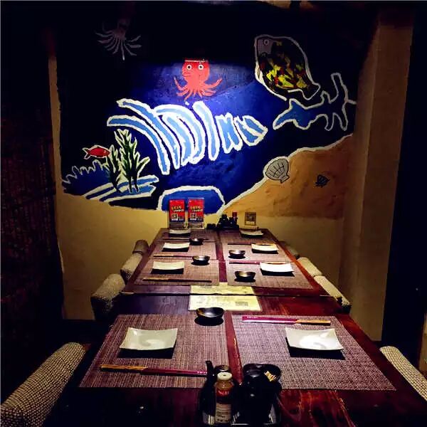 五町目位于广西路上,门面不大,但是深夜食堂的招牌非常吸引人,原来五町目同时也是天津营业到深夜最晚的日料,一直营业到凌晨3:00,真真是暖了食客的身心的深夜食堂,店里装修古朴,木质的墙壁上还贴着灌篮高手、北斗神拳等日本知名动画片的卡通画,门面不大,但是室内有三层的开间,一层是吧台和一间可容纳12-15人的包间,二层是一间可以容纳6-8人的小包间,三层是炉端烧和炭烧台,还有散座,布局紧凑而温馨,很有日剧里深夜食堂的感觉。