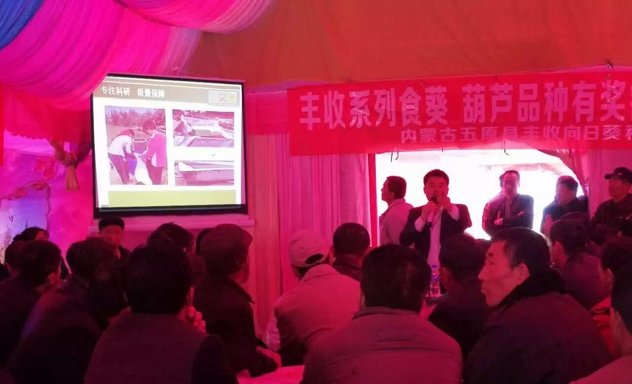 今日内蒙古五原县丰收向日葵种业有限责任公司丰收系列食葵、葫芦品种有奖销售会在五原县城南乡富兴达农民专业合作社隆重召开。