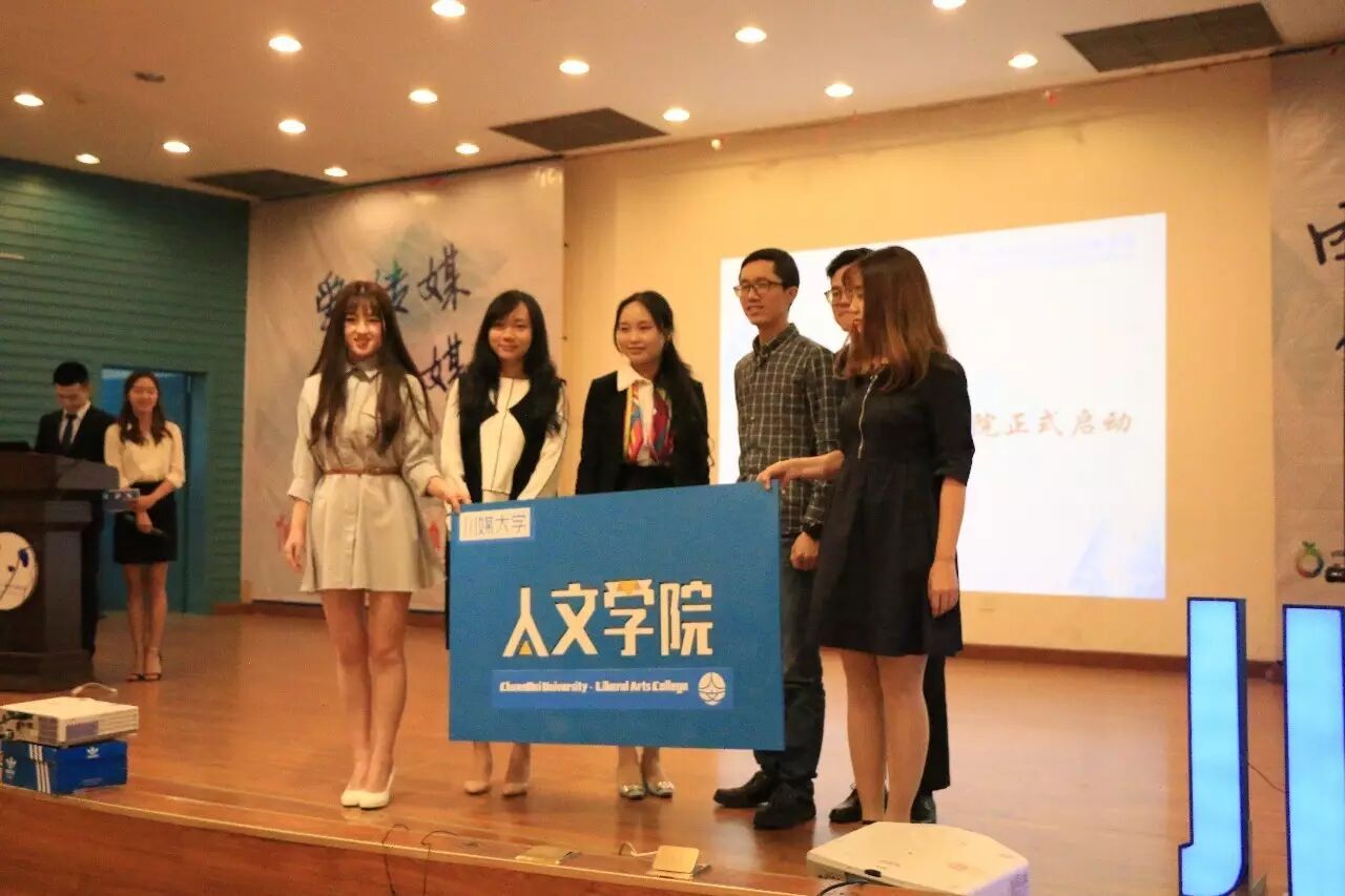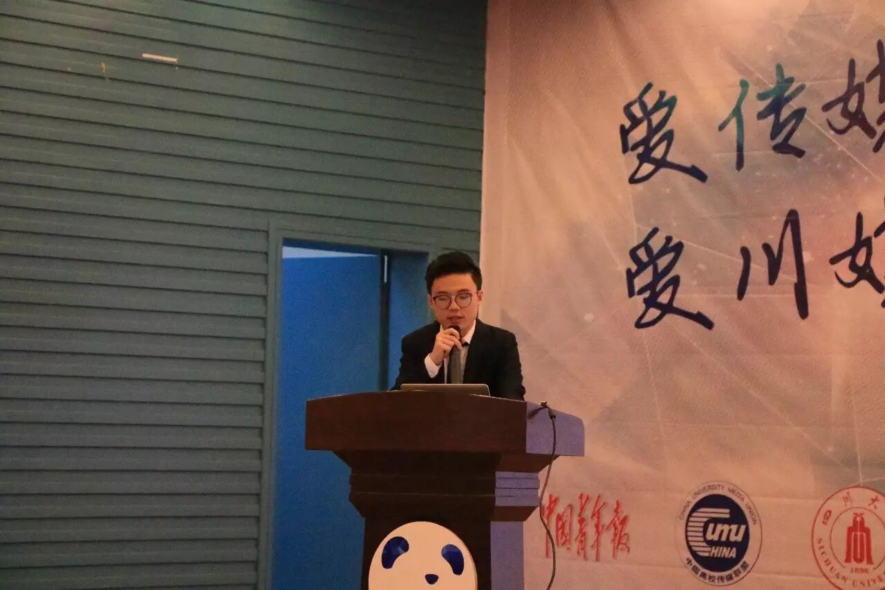 紧接着,四川校媒副主席孙苒代表主席团,揭晓并详细介绍了四川校媒于2017年全新打造的品牌活动——“川媒大学 • 人文学院”。“川媒大学”共设置四个专业:没有情怀的影评系、无关作者的图书鉴定系、只闻声看词的音乐系、无关学校的校园新闻系。不仅为参加的学员提供证书、奖学金和实践机会,还能让学员们在学习和交流中收获跨高校的友谊。
