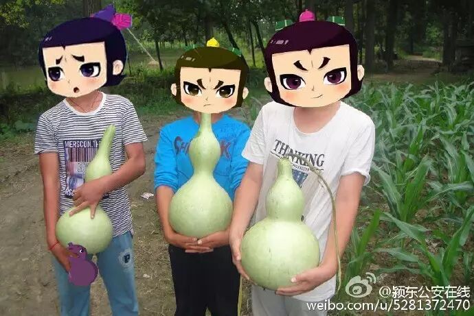 ,近日,插花镇3个男孩暑假期间天天看动画片,他们在村里一处葫芦地偷了几个葫芦,“扮起”了葫芦娃。阜阳市插花派出所民警找来3个男孩的家长,通过协商赔偿了受害人的经济损失,并对3个男孩进行批评教育。