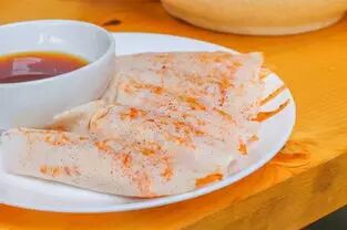 钵钵鸡成都人是再熟悉不过了,如果觉得腻,来个薄饼在合适不过了。薄饼里面夹的是萝卜丝花生粒白糖,要沾着糖醋碟吃,很化渣爽口。