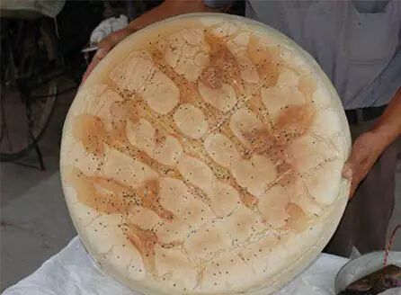 了一会儿,他从盔内取出烙成的馍一尝,酥脆可口,这就是锅盔馍。