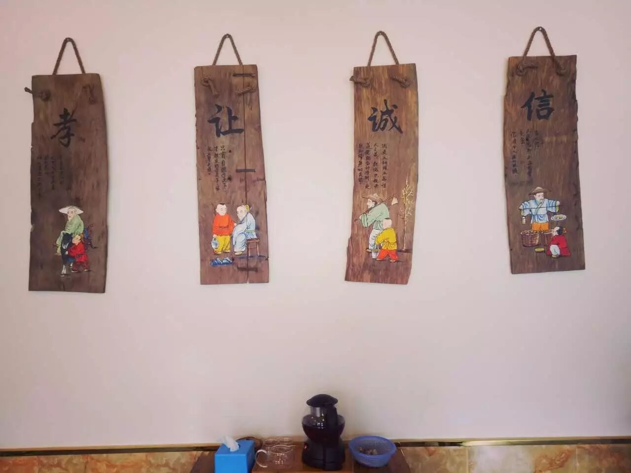 蒲城是孝道文化的发源地,墙上一组挂饰可以看出老板的为人来!而且店内靠墙边的每张桌子上都有一个养生壶,里面有煮好的普洱供大家免费品尝。