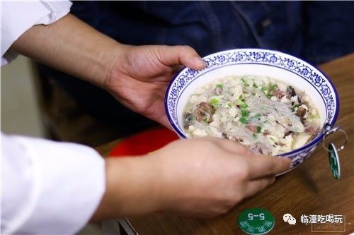 1看见馍碗周边汤水较多,中间则少,当地人称这种料理方式为“水围城”!(或许还有水量更丰沛的,建议可改名“水漫馍山”)