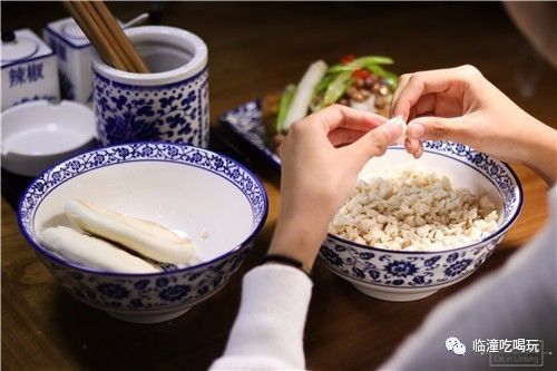 坐下之后会人手一个大碗+俩馍,开掰!掰完馍自取餐桌上的号码牌,连同碎馍一起交给服务员,这时候可以歇歇手指喝碎馍一起交给服务员这时候可以歇歇手指喝碗热汤,吃吃凉菜,与身边的亲朋好友闲唠一番。