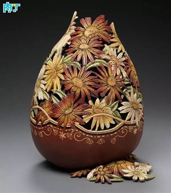 看得出,她是在用生命的感悟从事她的葫芦创意雕刻!