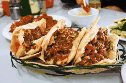 ①老韩头鸡汤豆腐串 ②正红旗烧鸽子 ③阿满招财猪手 ④延吉冷面