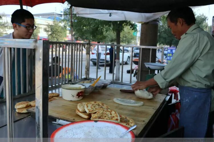 偶然的机会,在汾河湾汽车站旁边发现锅盔3元的牌子,嘿!敢要3元想必不一般。一打听才知道,这才是正宗的老绛州锅盔。打锅盔的老汉姓王,夫妻俩个打了一辈子锅盔,纯粹是按最地道的老式锅盔打法,从用面用油到和面挫油,从硬面硬揉炉火烤制,每一道工序毫不马虎。旁边的邻居说老王一天只打一袋面的锅盔,光和那一袋面夫妻俩就累的不行,因为不用搅拌机硬面一直揉,非常吃力,一点不行都不放过,对自己的锅盔从不愿意别人说一个不好,完完全全是精心到位,没得说!