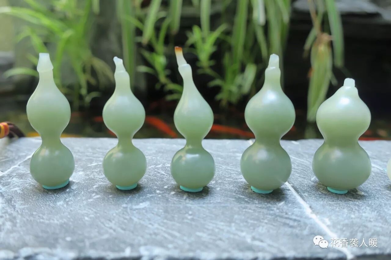 当然,我的葫芦们材质是和田玉的,和翡翠的葫芦不太一样