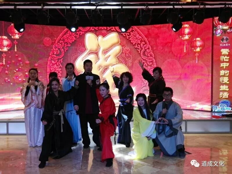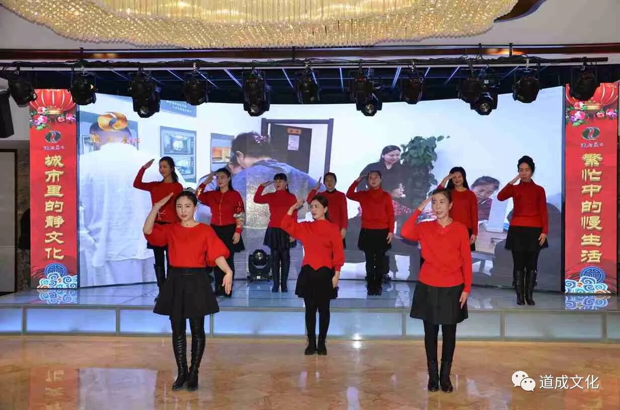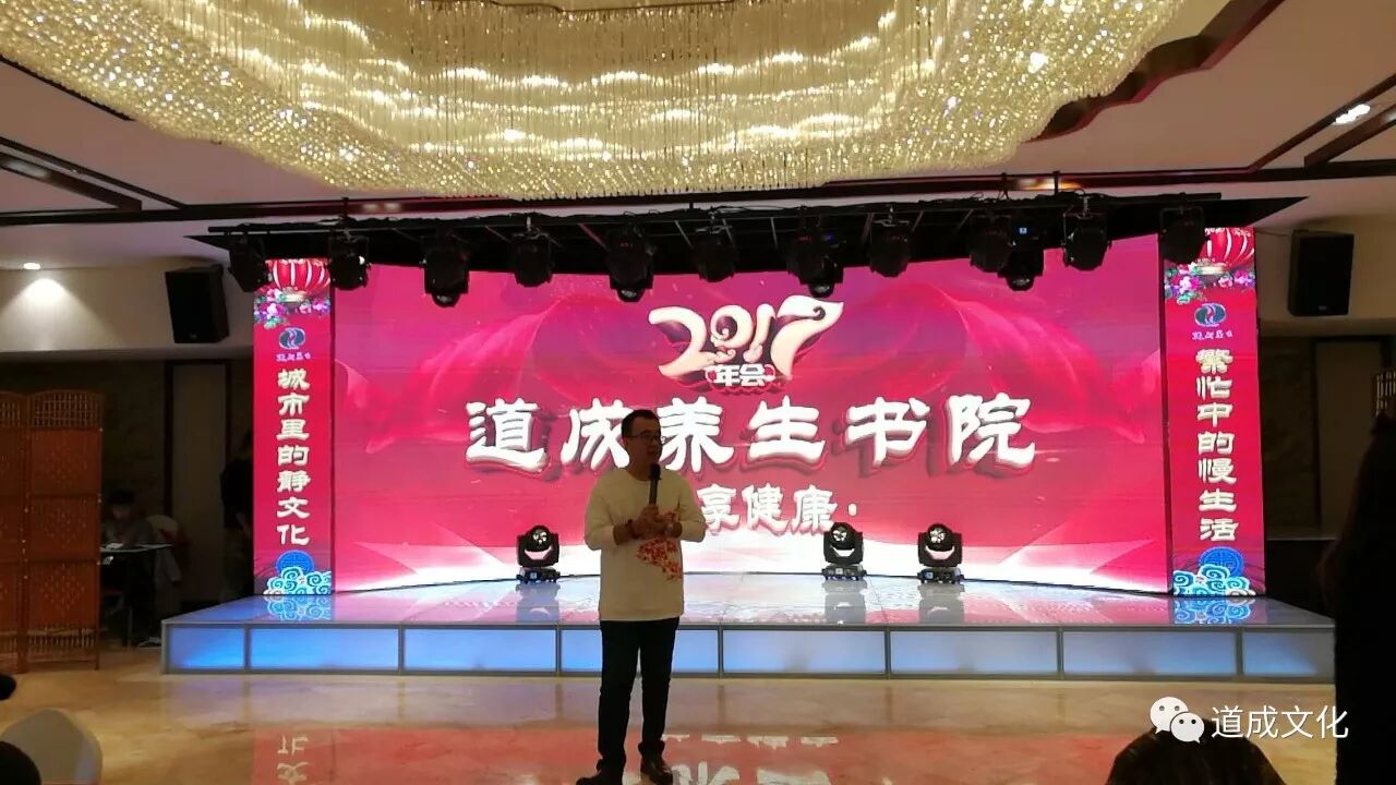 道成养生书院2017主题年会在拾渔酒店4层牡丹厅如期举办,并取得圆满成功!2017年工作总结及2018年美好展望,迎新年汇演,午宴三个部分浑然一体,展示了道成三年来在弘扬“静文化、慢生活”炼气养生上取得的卓越成绩,道成发起人的大爱初心,团队的快速成长,受益人的心声表达。作为大庆市武协会员单位的道成养生书院与武协各级组织连横合纵,努力建设大庆健康城的整体规划,获得大庆市武协徐主席的高度评价,并激起了与会嘉宾高度热情,迎来敬佩的目光和经久不息的掌声。节目精彩纷呈,歌曲舞蹈小品,凝聚着所有会员、员工的对道成深深的感恩和感动。午宴在浓浓的亲情和喜庆中进行……