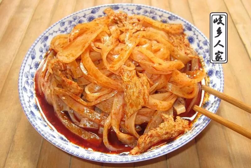 擀面皮是陕西地区特有的传统小吃,尤以西府宝鸡地区为最佳,宝鸡岐山擀面皮2011年就被认定为中华名小吃。